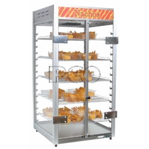 Nacho-Kombiwärmer mit 5 verstellbaren Fachböden zum Wärmen von vorportionierten Nachoschalen und Käse-Dip in Portionsbecher 230 V 460 A Maße: T.45 B.45 H.90 cm